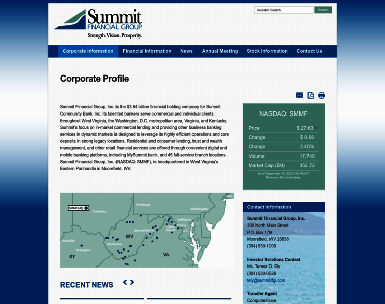 The Investor Relations website contains information about Summit Financial Group, Inc.'s business for stockholders, potential investors, and financial analysts.