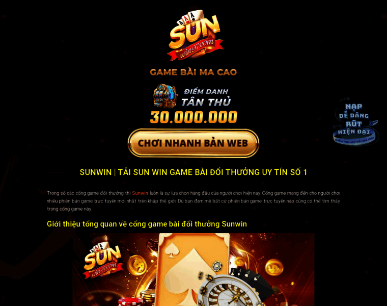 Sunwin - Cổng game bài Macau đổi thưởng xanh chín 2026. Tải ngay sunwin để trải nghiệm: xóc đĩa, nổ hũ, bắn cá... Nạp rút 30s, hỡ trợ 24/7. Đăng ký thưởng 2026K