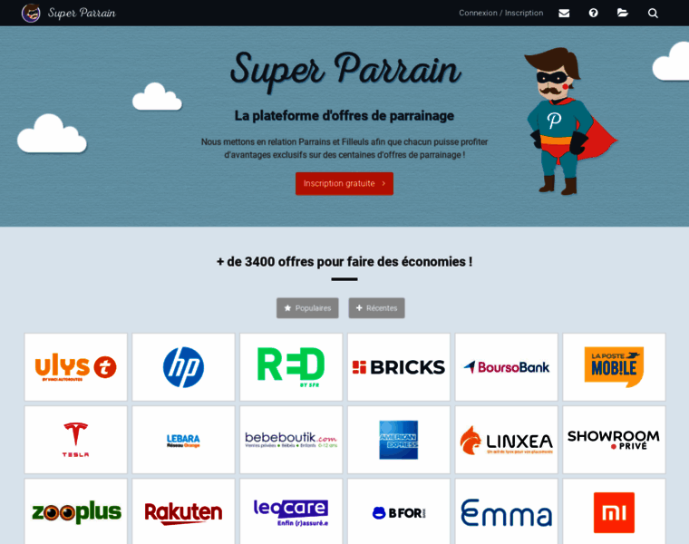 Super Parrain est un service mettant en relation Parrains et Filleuls afin que chacun puisse profiter d'avantages exclusifs sur des centaines d'offres de parrainage !