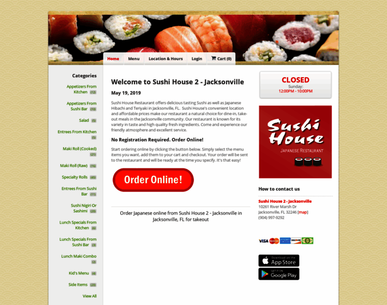 Sushi House 2 | Order Online | 10261 River Marsh Dr, Jacksonville, FL | Japanese Sushi, Tempura, Teriyaki, Hibachi