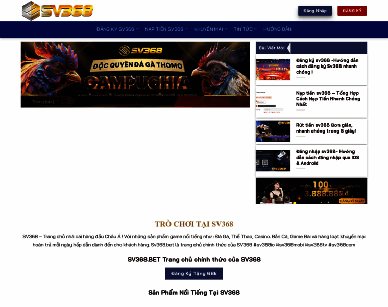 SV368 - Nhà cái uy tín số 1️⃣ Châu Á Cung cấp nhiều tiền thưởng sòng bạc. Với nhiều sảnh game giải trí hấp dẫn như : Đá Gà Thomo, Thể Thao, Casino, Bắn Cá.