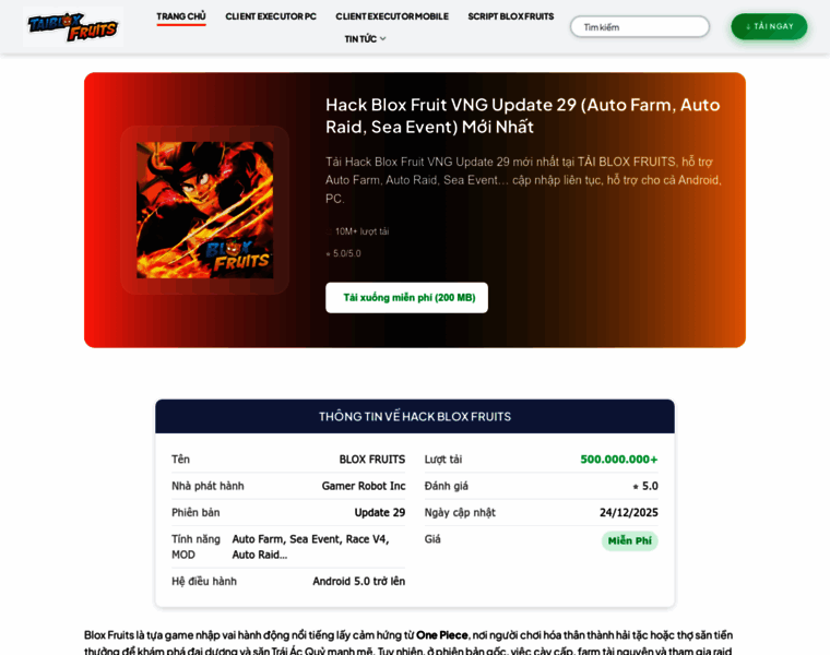 Tải Hack Blox Fruit VNG Update 29 mới nhất tại TẢI BLOX FRUITS, hỗ trợ Auto Farm, Auto Raid, Sea Event... cập nhập liên tục, hỗ trợ cho cả Android, PC.