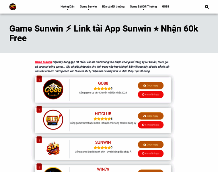 Game Sunwin ✔️✔️✔️ Tặng ngay 60k khi nạp lần đầu ❤️❤️ Trang chủ đăng ký, đăng nhập, tải App Sunwin, hỗ trợ chính thức nhà cái Sunwin.