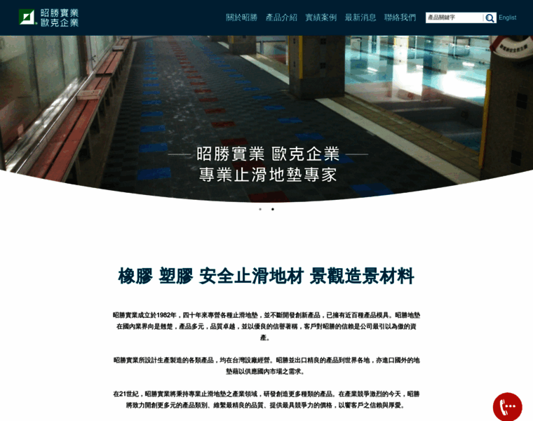 昭勝實業成立於1982年,二十年來專營各種止滑地墊,並不斷開發創新產品,已擁有近百種產品模具。昭勝地墊在國內業界向是翹楚,產品多元,品質卓越,並以優良的信譽著稱,客戶對昭勝的信賴是公司最引以為傲的資產。昭勝實業所設計生產製造的各類產品,均在台灣設廠經營。昭勝並出口精良的產品到世界各地,亦進口國外的地墊藉以供應國內市場之需求。