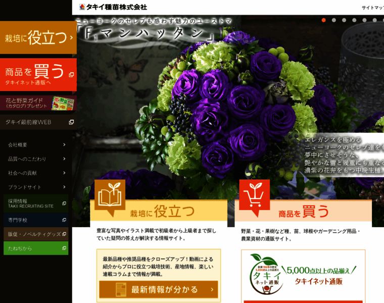 一歩進んだガーデニングや家庭菜園に農家御用達「タキイのタネ」。品種データベースや病害虫情報など役に立つ情報が満載!通信販売も行なっております。ぜひご利用ください。