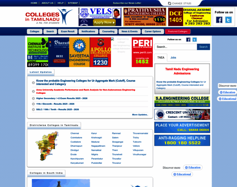 Higher Education in Tamilnadu, India : The Complete Information about Arts & Science, Catering & Hotel Management, Engineering, Management, Medical / Para-Medical - Dental, Homeopathy, Ayurvedha, Siddha, Occupational Therapy, Physiotherapy, Nurisng, Pharmacy and Polytechnic Colleges in Tamilnadu, India