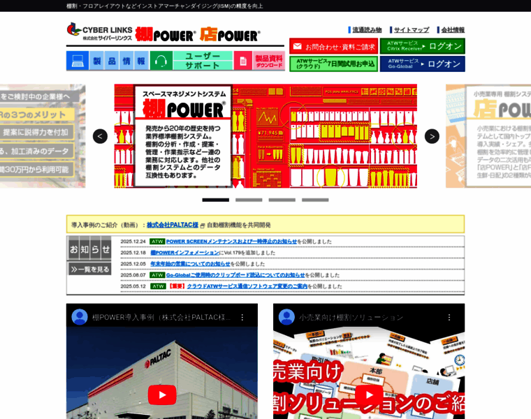 棚POWER、店POWER、床POWERなど、棚割管理を中心にしたソフトを開発する株式会社サイバーリンクスのサイト。メーカー、卸、小売業といった幅広い業態のインストア・マーチャンダイジングを支援。