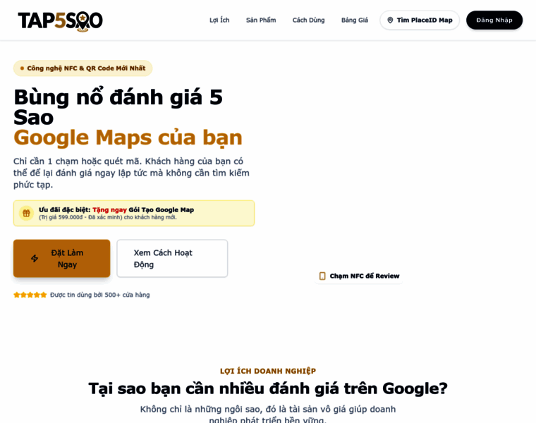 Bảng QR Chạm NFC Đánh Giá Google Maps | Tap5sao.com - Uy Tín & Chất Lượng