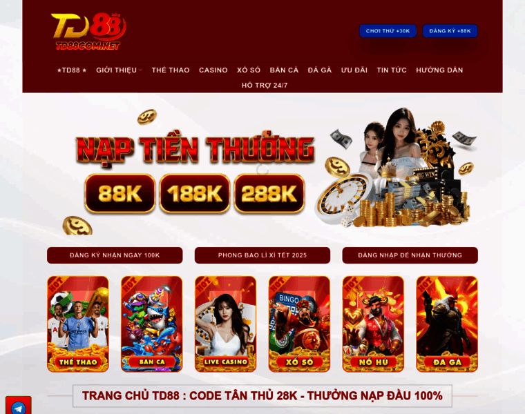 Trang Chủ TD88 : Code Tân Thủ 28K - Thưởng Nạp Đầu 100%