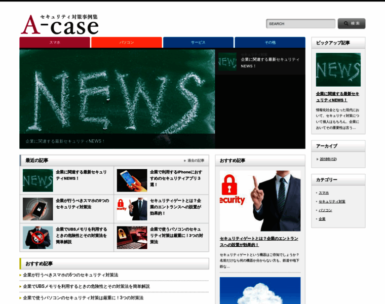 企業のセキュリティ対策についてまとめたサイトです。パソコンやスマホ、クラウドサービスに関するセキュリティ対策について、事例についてまとめています。