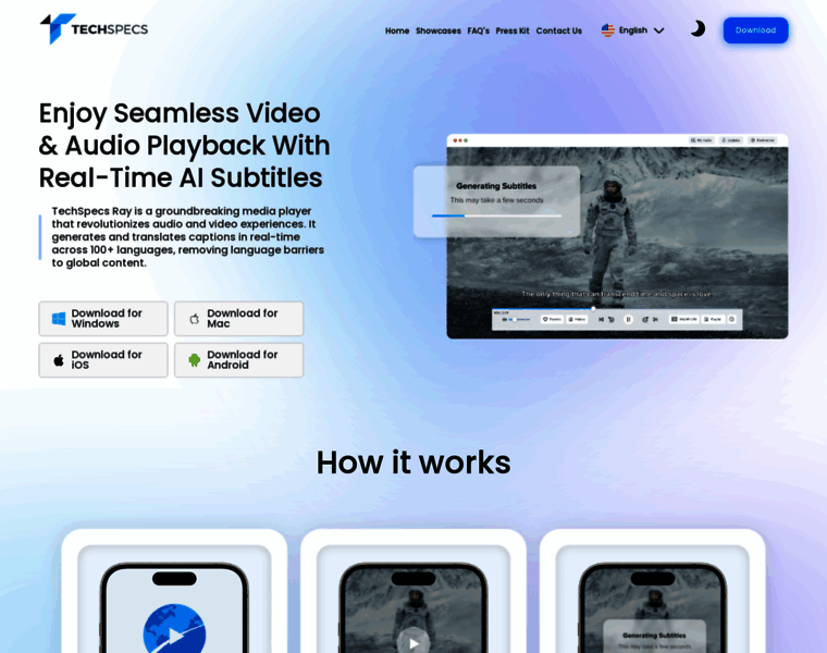 TechSpecs Ray, powered by AI agent ASTRA, revolutionizes media by generating and translating subtitles in real-time across 100+ languages, breaking language barriers.