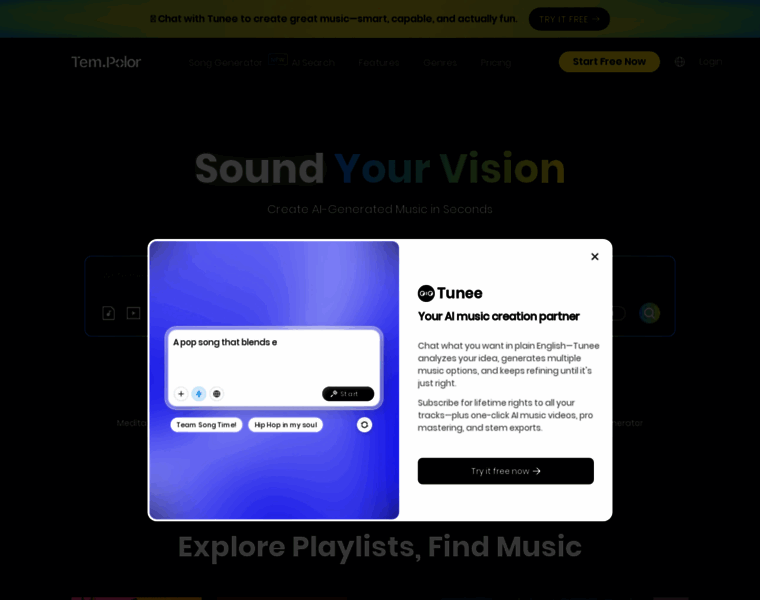 TemPolor: AI Music Generator for Royalty-Free Tracks | Create Instantly