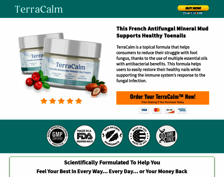 TerraCalm is a topical formula that helps consumers to reduce their struggle with foot fungus, thanks to the use of multiple essential oils with antibacterial benefits. This formula helps users to easily restore their healthy nails while supporting the immune system’s response to the fungal infection. Order Your TerraCalm™ Now!
