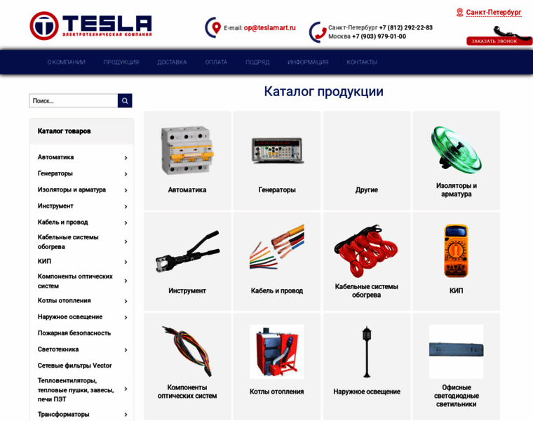 Электротехническое оборудование оптом и в розницу в Санкт-Петербурге | ТЕСЛА