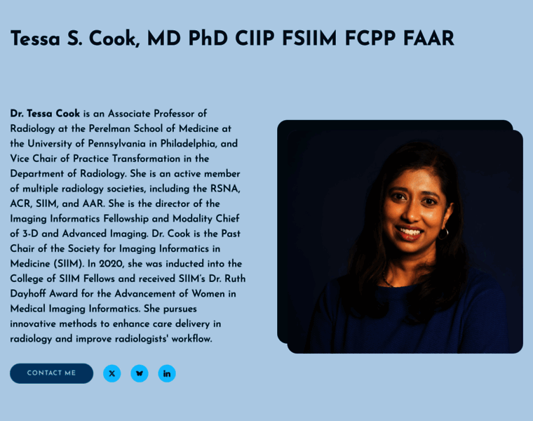 Dr. Tessa S. Cook - Associate Professor of Radiology at the University of Pennsylvania, specializing in imaging informatics, AI, and practice transformation.