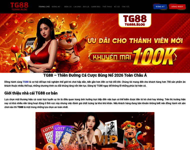 Nhà cái TG88 là thiên đường dành cho những ai đam mê trò chơi cá cược với hơn 700 game hot. Đăng ký tài khoản thành viên mới nhận ưu đãi 88k tân binh ngay.