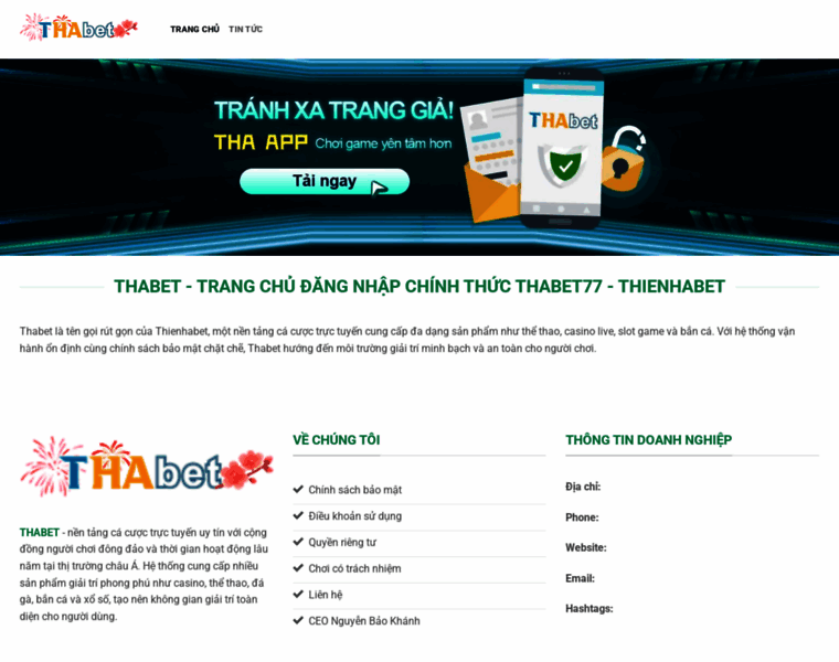 Thabet là tên gọi rút gọn của Thienhabet, một nền tảng cá cược trực tuyến cung cấp đa dạng sản phẩm như thể thao, casino live, slot game và bắn cá. Với hệ