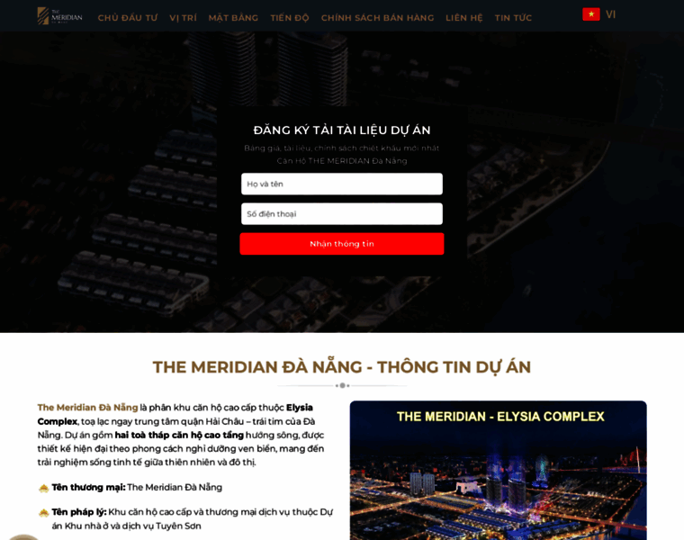 The Meridian Đà Nẵng – Khu căn hộ cao cấp thuộc Elysia Complex City, do Landcom đầu tư & phát triển. Vị trí trung tâm quận Hải Châu, tầm nhìn sông – biển, tiện ích 5 sao, pháp lý minh bạch, bàn giao năm 2026.