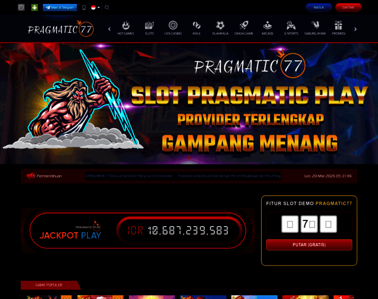 PRAGMATIC77 merupakan situs slot gacor lisensi Pragmatic Play resmi dengan permainan slot online provider slot88 terbaik dengan winrate setinggi langit.