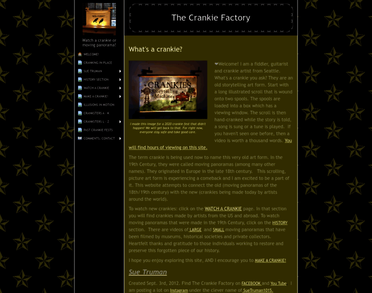 What's a crankie? - ❤Welcome! I am a fiddler, guitarist and crankie artist from Seattle. What's a crankie you ask? They are an old storytelling art form. Start with a long illustrated scroll that is wound onto two spools. The spools are loaded into a box which has a viewing window. The scroll is...