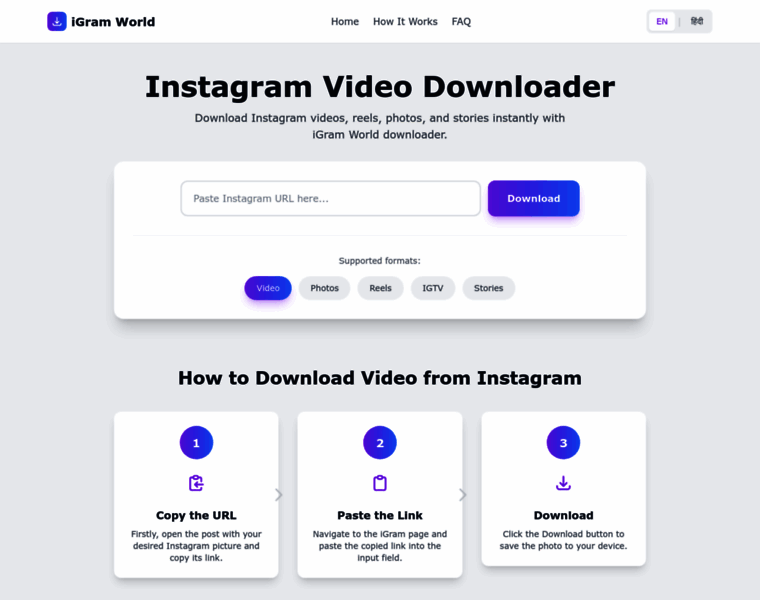 iGram World is a free Instagram downloader that allows you to download reels, videos, stories, IGTV and photos instantly. Fast, secure and easy to use.