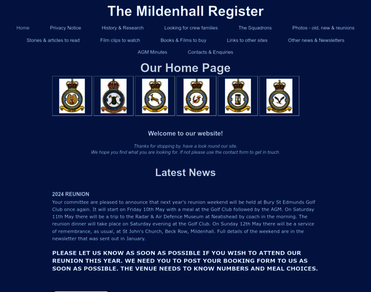 The Mildenhall Register is a website for all veterans of the squadrons (XV, 75, XC, 149, 218, 622) who served at RAF Mildenhall and its' associated satellite airfields and for families and friends of those who served there.
