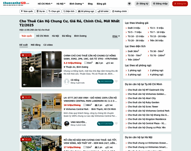 Cho Thuê Căn Hộ Chung Cư, Giá Rẻ, Chính Chủ, Mới Nhất T11/2025 - Thuecanho123.com