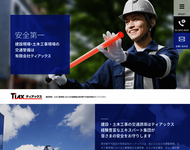 東京都千代田区神田の有限会社ティアックスは、主に建設現場・土木工事現場における交通警備を行っております。安全第一で経験豊富なエキスパートたちが皆様の安全を守ります。