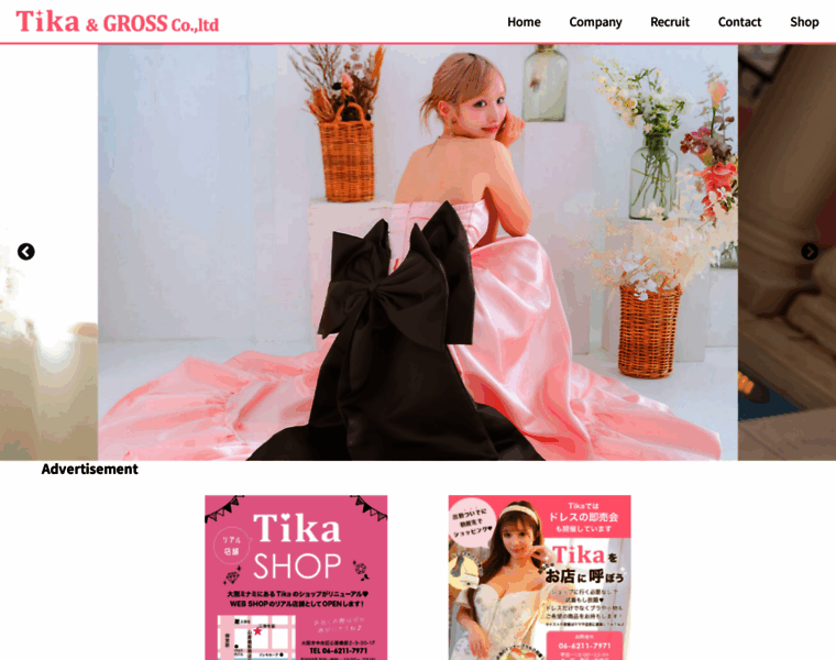 キャバドレスやパーティードレス、ドレス用の靴にレディースカジュアルまで女の子を可愛くするアイテムの販売と卸を行う会社、株式会社Tika & GROSSのオフィシャルサイトです。
