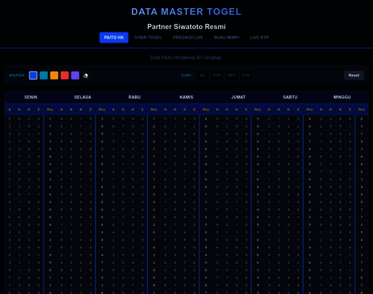 Siwatoto menyadiakan kelengkapan Data Master HK, Syair, Mimpi, Prediksi & RTP
