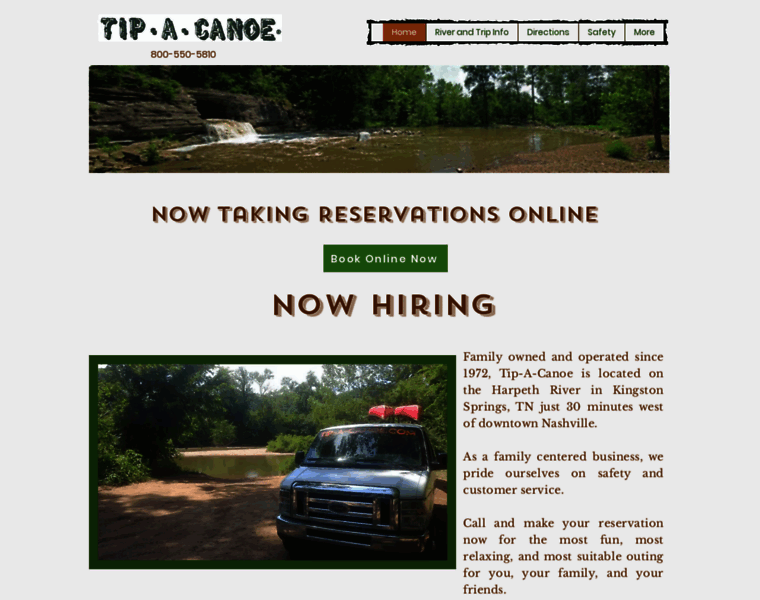 Canoe and Kayak Rental on the Harpeth RIver in Kingston Springs, TN. Tip-A-Canoe since 1972 is the oldest canoe and kayak rental in the state of TN and the South.