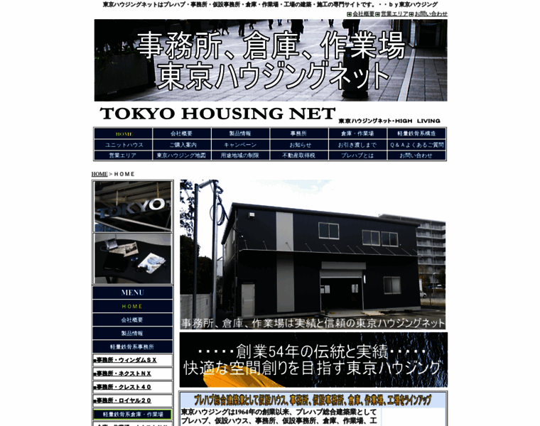 東京ハウジングネットはプレハブ、プレハブ事務所、プレハブ倉庫、プレハブ作業場の建築・施工の専門会社です。 プレハブ専門として創業以来54年の実績と経験でお客様のニーズに合わせたお見積りをローコストでプランニングから施工までご提案させて頂きます。