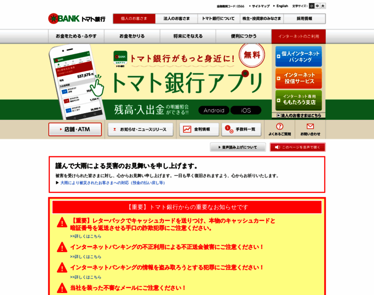 トマト銀行:個人のお客さま