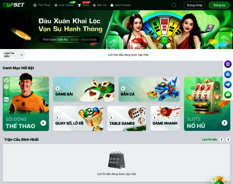 Truy cập Topbet link chính thức. Đăng ký tài khoản Topbet nhận bonus mới nhất, cá cược thể thao, casino online uy tín, hỗ trợ 24/7.
