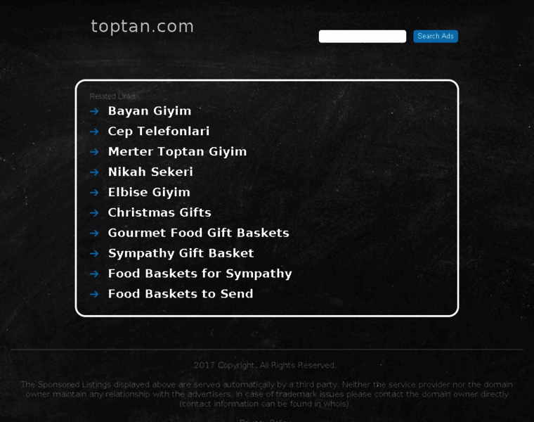 This website is hosted with SEDO GmbH, which reserves the following IP addresses for toptan.com: 64.190.63.222. Moreover, DNS used with this website include ns1.sedoparking.com, ns2.sedoparking.com.
