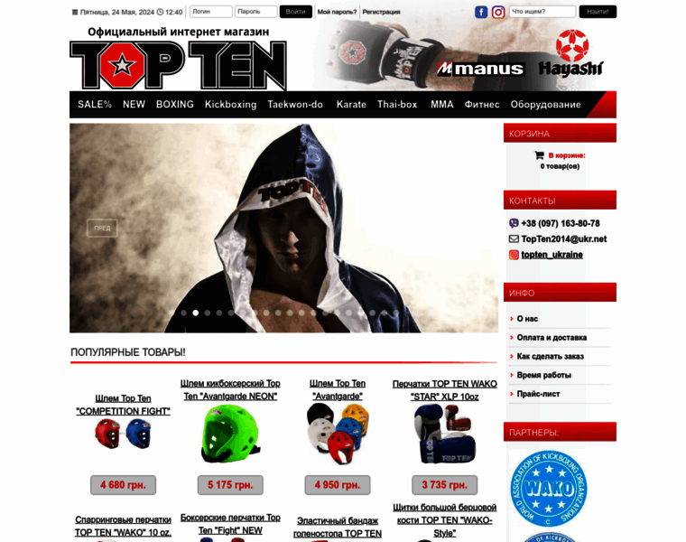 «TOP TEN» экипировка чемпионов! - интернет-магазин «TOP TEN», все для бокса, товары для бокса, купить AIBA Top Ten, купить top ten Wako, top ten itf, top ten wkf, товары для кикбоксинга, muay thai, та...