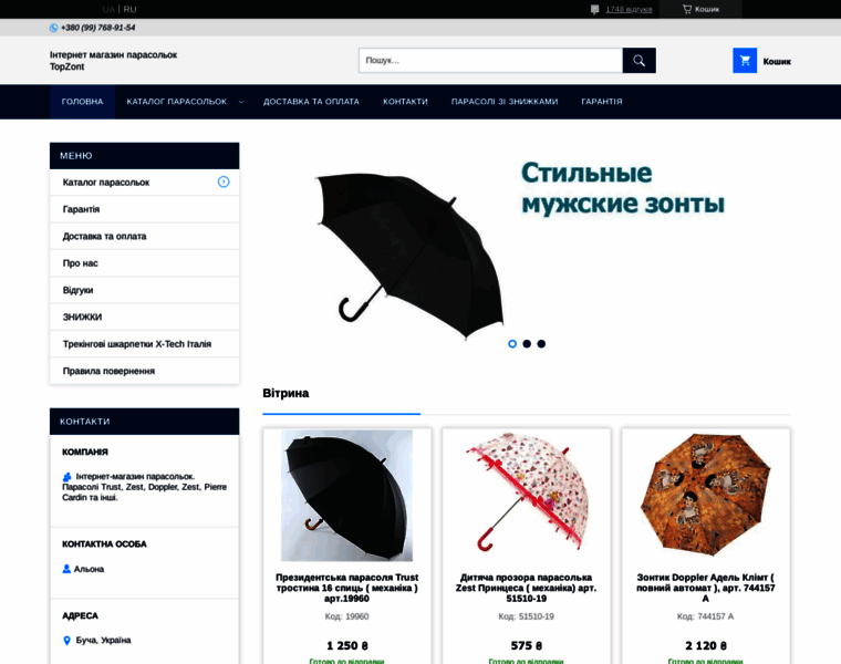 "Інтернет-магазин парасольок. Парасолі Trust, Zest, Doppler, Zest, Pierre Cardin та інші." - контакти, товари, послуги, ціни