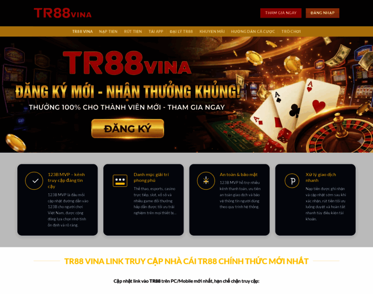 TR88 VINA là kênh đại diện hỗ trợ người chơi tại Việt Nam, cung cấp thông tin link vào TR88 mới nhất và hướng dẫn cơ bản khi sử dụng dịch vụ trên hệ thống.