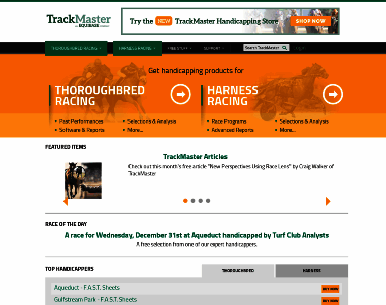 TrackMaster, an Equibase Company is your complete source for Thoroughbred, Quarter Horse & Harness Racing for all levels of handicapping sophistication