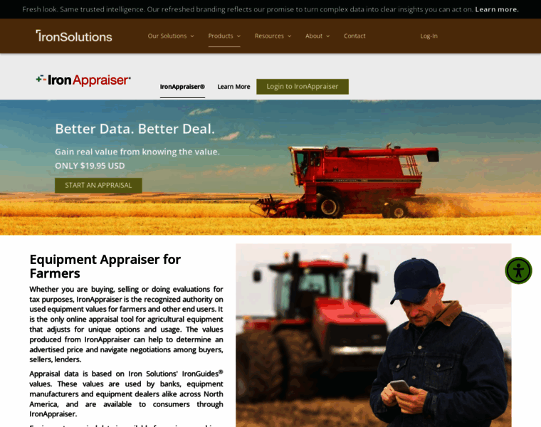 IronAppraiser is the recognized authority on used equipment values for farmers. It’s is the only appraisal tool that adjusts for options and usage.