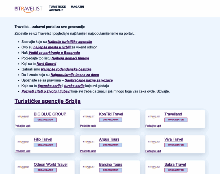 Travelist - Turistički portal: Turističke agencije Srbije i turistički magazin