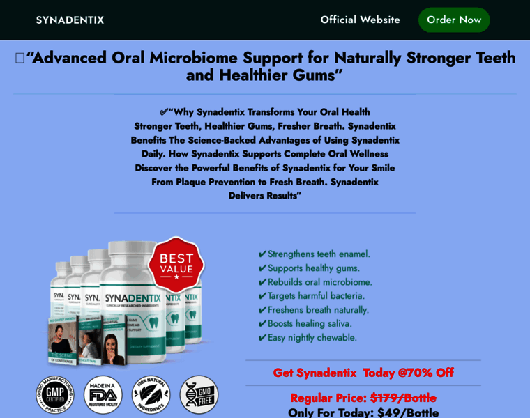 Welcome to Synadentix Official website.. https://trisynadentix.com/ Synadentix restores gum health, strengthens teeth, and supports a clean oral microbiome using powerful science-backed ingredients.