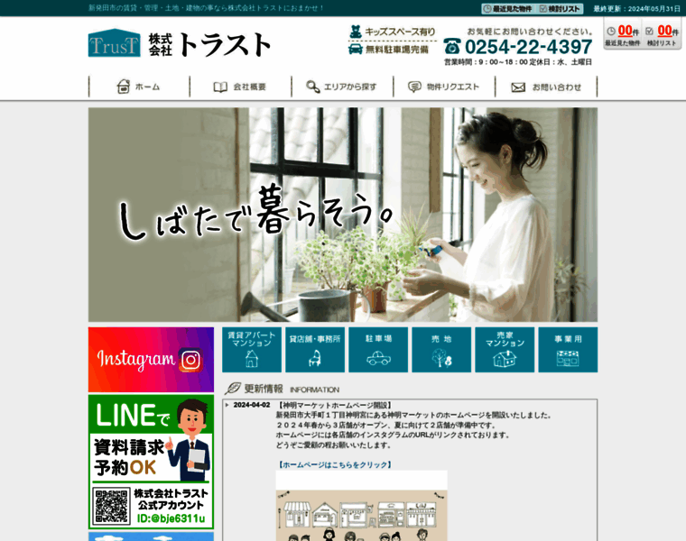 こちらは株式会社トラストのTOPページです。新発田市で賃貸・管理物件を中心とした不動産情報をお客様にご提供いたします。新発田市で土地・建物をお探しでしたら、ぜひ株式会社トラストまでお気軽にお問い合わせください。