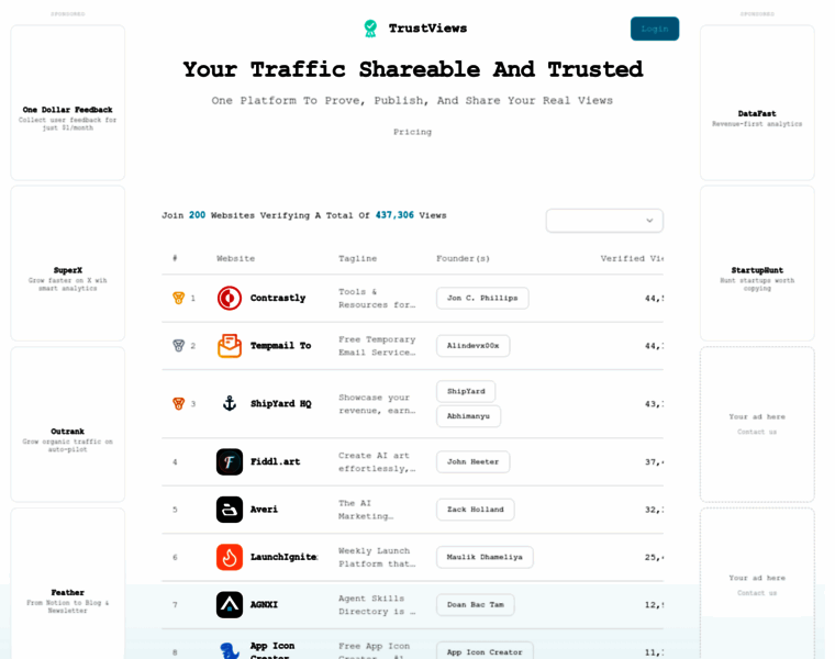 Discover verified websites and their founders. Your traffic shareable and trusted.