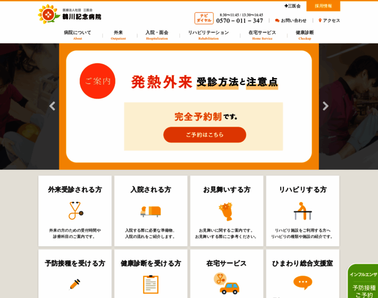 東京都町田市の鶴川記念病院のホームページです。外来(内科・小児科・リハビリテーション科)、訪問診療、健康診断を行う病院です。訪問看護ステーション鶴川・長沢ひまわり、デイサービス三輪と連携し、地域密着型の医療サービスを提供します。