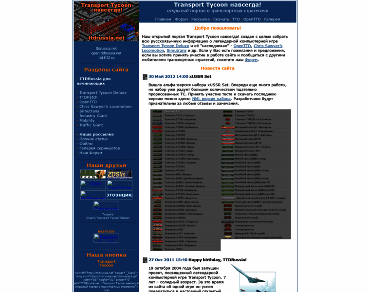 Transport Tycoon навсегда! - новый открытый портал о транспортных стратегиях. Здесь можно узнать всё о Transport Tycoon Deluxe, Locomotion, Transport Giant, скачать патчи и новую графику, пообщаться с другими любителями этих замечательных игр.