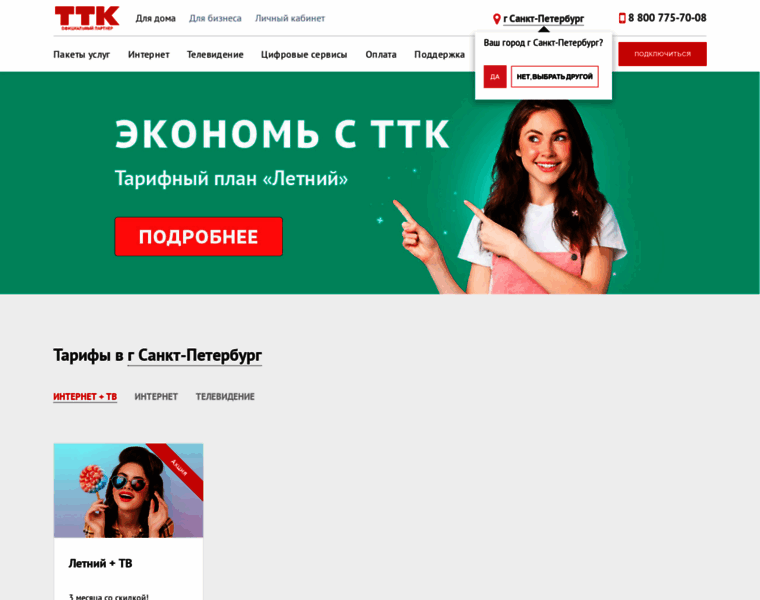 Подключите безлимитный интернет и цифровое телевидение от провайдера ТТК. Выгодные тарифы, скоростной интернет, большой выбор ТВ каналов. Официальный сайт провайдера.