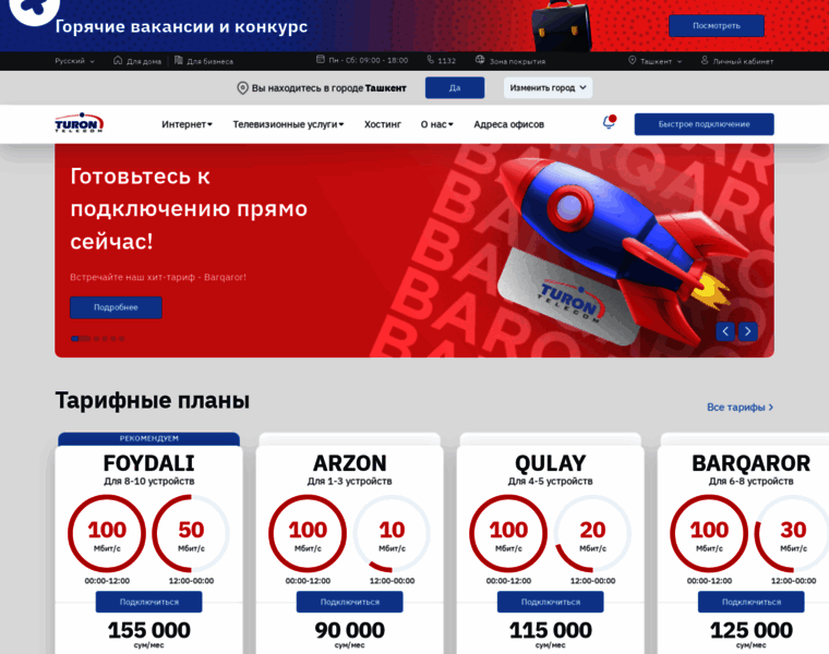 Turon Telecom’dan internet, TV va routerlarga ulaning ⭐. ⭐ Yuqori tezlik, 24/7 qo‘llab-quvvatlash. Hozir ulaning