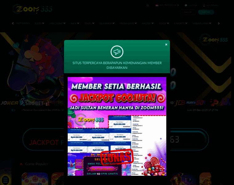 Zoom555 Sekarang Menyediakan Link Resmi Login yang mudah Akses Kedalam Game Zoom 555 yang sudah Berlisensi Menyediakan berbagai Game Online yang Mudah Menang Dengan Bonus 100% terbaik