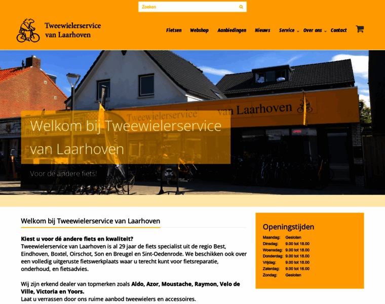 Kiest u voor dé andere fiets en kwaliteit? Tweewielerservice van Laarhoven is al 28 jaar de fiets specialist uit de regio Best, Eindhoven, Boxtel, Oirschot, Son en Breugel en Sint-Oedenrode. We beschikken ook over een volledig uitgeruste fietswerkplaats waar u terecht kunt voor fietsreparatie, onderhoud, en fietsadvies. Wij zijn dealer van Aldo, Azor, Bakfiets.nl, Bikkel, Moustache, Raymon, Velo de Ville, Victoria en Yoors Laat u verrassen door ...